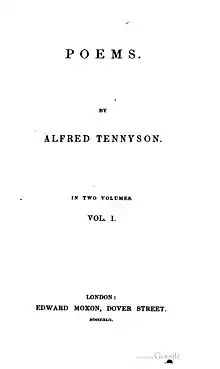 Poems, by Alfred Tennyson, was a two-volume 1842 collection in which new poems and reworked older ones were printed in separate volumes. It includes some of Tennyson's finest and best-loved poems,[1][2] such as Mariana, The Lady of Shalott, The Palace of Art, The Lotos Eaters, Ulysses, Locksley Hall, The Two Voices, Sir Galahad, and Break, Break, Break. It helped to establish his reputation as one of the greatest poets of his time.