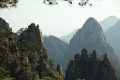 Shen Zhou's ancestors experienced the end of the Yuan Dynasty otherwise known as the period of Mongol rule over China. His great-grandfather, Shen Liangchen (1340–1409) acquired property for the family estate at Xiangcheng, a decision that would transition Shen Liangchen's family into economic prosperity. This translated directly into the life of Shen Zhou who lived a life wealthy with money, knowledge, and culture. Shen Zhou's grandfather, Shen Cheng, was a famous art collector who hosted famous Chinese artists at the estate for most of his life.[5] Shen Zhou's father, Shen Hengji (1409–77), along with his uncle, Shen Zhenji (1400 – c. 1482), also spent their entire lives creating works of art. Although the work of Shen Hengji and Shen Zhenji has not been maintained through history, their lives clearly had a direct effect on the ambitions of Shen Zhou. Due to the level of wealth this family experienced, Shen Zhou had a significant length of time to practice his craft. It was in young adulthood when Shen Zhou was introduced to the Wu School style of art. Shen Zhou's father and uncle had been taught by Chen Kuan (1398 – c. 1467), a teacher who was principal in demonstrating the style of the Wu School. Du Qiong (1397–1474) who had been a student to Chen Ji, the father of Chen Kuan, taught Shen Zhou everything he knows. This deep intermingling of family and scholars is what eventually formed Shen Zhou into the model student, referenced throughout history as an exemplification of the Wu School style.[6] It is projected that c. 1471 is when Shen Zhou began creating Poet on a Mountaintop because this is when Shen Zhou began experiencing true independence. He found much of his inspiration for his works traveling locally around Suzhou. It is believed that the scene portrayed in Poet on a Mountaintop is a similar representation of a view Shen Zhou experienced during these travels.[7]