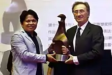 ![]() Huang Lihai presents George Szirtes with Poetry and People Prize | |
