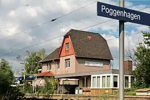 Poggenhagen is a railway station of category six[2] located in Poggenhagen, a borough of Neustadt am Rübenberge, Germany. The station is located on the busy Bremen–Hanover railway and was opened in 1908; the last upgrade was for the launch of the Hanover S-Bahn in 2000, whose line S2 serves the station hourly.