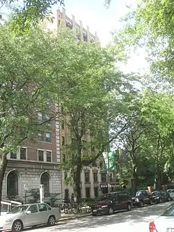 The Poinsettia Apartments (also spelled the Poinsetta Apartments) are an apartment hotel at 5528 S. Hyde Park Boulevard in the Hyde Park neighborhood of Chicago, Illinois. Built in 1929, the building was the last of several apartment hotels built in Hyde Park during a period of residential development in the late 1910s and 1920s. Apartment hotels were popular among wealthier workers in the city at the time, as they combined the amenities and prestige of hotels with the affordability of apartments.[2] The Poinsettia Apartments were both the smallest of the Hyde Park apartment hotels and the only building designed in the Spanish Colonial Revival style. Its design features pilasters spanning the height of the building, terra cotta ornamentation, and decorative window surrounds on the first two floors.[3]