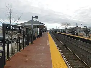 Point Pleasant Beach is a train station located in Point Pleasant Beach, in Ocean County, New Jersey, United States, on NJ Transit's North Jersey Coast Line, and is one of the most significant stops on the NJCL portion between Long Branch and Bay Head. This station is located on one of the borough's major arteries, Arnold Avenue, Route 35, several blocks from the Atlantic Ocean, boardwalk, Manasquan Inlet marina, and within the community's downtown business, shopping, dining and entertainment nexus. The current building and platforms are approximately 10 years old, a consequence of the station's redevelopment yielding the modern fixtures and services. The station is handicapped-accessible.