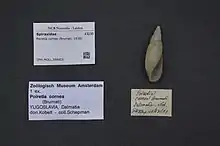 - ↑ Fischer P., Oehlert P. & Woodward S. P. (1887). Manuel de conchyliologie et de paléontologie conchyliologique ou histoire naturelle des mollusques vivants et fossiles suivi d'un appendice sur les brachipodes. Avec 23 planches contenant 600 figures et 1138 gravures dans le texte. pp. I-XXIV [= 1-24], 1-1369, [1-6], Pl. [A], I-XXIII [= 1-23], map [1]. Paris. (Savy).
