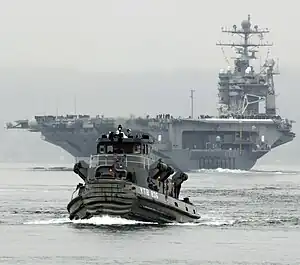 ![]() Pokagon (YTB-836) returns to the pier as the Nimitz-class aircraft carrier USS Abraham Lincoln (CVN-72) departs Naval Station Everett, WA. for a scheduled deployment to the 5th Fleet area of responsibility. | |