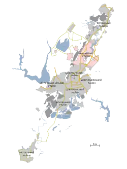 Pokrovskyi District[1] (Ukrainian: Покро́вський райо́н), known until 2016 as Zhovtnevyi Raion (Ukrainian: Жовтне́вий райо́н),[2][3] is an urban district of northern Kryvyi Rih, south-central Ukraine. It is located along the river Saksahan. Among other districts of the city, it has about 6,000 hectares making it the largest in terms of area, with a population of over 142,955 people (2001). The district has 271 streets with a total length of 527 km, of which 192 are private sector streets.