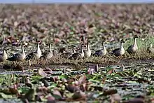 As a result of the biodiversity and abundance of fish and mussels, Polachira is a favorite destination for migratory birds.[3] Polachira recorded over 151 species which includes perigin falcon (the fastest bird on earth),spot billed pelicon , white stork, painted storks and plenty of duck species. Monthly birdwalks are conducted by group of people from kollam birding battalion.[4]