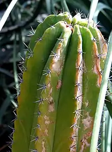 Polaskia (named after American amateur Charles Polaski) is a genus of tree-like cacti reaching 4–5 m high, comprising 2 species. Both present primitive characteristics, but Polaskia chichipe is nearer to Myrtillocactus while Polaskia chende is nearer to Stenocereus. The genus is found in the Mexican states of Puebla and Oaxaca.[1][2]