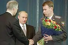 Police and Internal Affairs Servicemen's Day is the term to refer to the Police Day of the Russian Police (formerly the Russian Militsiya) and personnel the Russian Ministry of Internal Affairs (MVD). It was first introduced Chairman Leonid Brezhnev in 1962, and was made an official holiday in October 1980.[23] Since 2000, the President of Russia has given the keynote address in the State Kremlin Palace in front of police officers and interior ministry officials.[24] In many former Soviet republics, the holiday is celebrated in a similar manner to the Russians, but may however be celebrated on different days or called different things. Despite this, the most common reference to this Police Day is the Russian language translation Russian: День полиции, meaning Day of the Police or Day of the Militsiya in English. The latter was used as the name of the Russian holiday until the adoption of President Dmitry Medvedev's Russian police reform in March 2011.[25]
