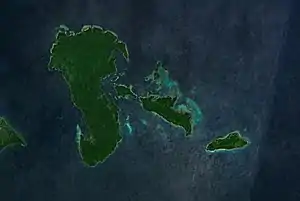 The Polillo Islands is a group of about 27 islands in the Philippine Sea lying about 25 km (16 mi) to the east of the Philippine island of Luzon. It is separated from Luzon Island by the Polillo Strait and forms the northern side of Lamon Bay. The islands are part of the province of Quezon in the Calabarzon region of the Philippines.[2][3] The combined land area of all the islands is about 875 square kilometers making Polillo islands even larger than the island city-state of Singapore.