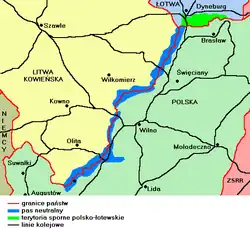 Polish–Lithuanian Neutral Strip[lower-alpha 1] was a demilitarised zone between Lithuania and Republic of Central Lithuania, and later Poland, that was established on 17 December 1920, following the treaty of Kaunas and disestablished on 22 May 1923. It was established by the League of Nations, to stop countries from fighting, following the Central Lithuanian Offensive on Kaunas. The zone was located on the borders of the separated countries between towns of Pabradė and Valkininkai and was, on average, 6 km wide on each side of the border.[1]