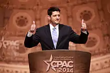 In his sixth term in 2008, Ryan began introducing budget proposals as a member of the House, distinct from his contributions to budget proposals in his capacity as a member and later ranking member and chair of the House Budget Committee.[12][13] His budget proposals were embraced by many of the Tea Party movement freshman Representatives elected to Congress in the 2010 midterm elections.[15] Ryan supports a line-item veto.[16]