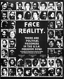 "Political prisoner" is an inherently vague term which is most commonly applied to people persecuted for their political beliefs or for their "threat" to the government.[1] Imprisonment for mere expression of political beliefs is rare in the United States, because free speech and free expression are well-established in law.[2] This was not always the case. For example, the Smith Act trials of Communist Party leaders incarcerated dozens of Communist Party USA leaders for advocating the overthrow of the United States government, a fact which was only halted by Yates v. United States (1957). However, several human rights groups, such as Amnesty International, have pointed to repeated examples of US federal and state governments targeting people affiliated with dissident movements for "neutralization" by applying much harsher sentences for real or "framed" crimes, such as during COINTELPRO.