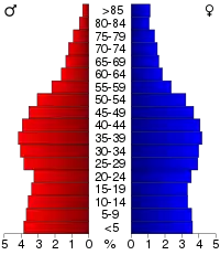Age spread: 25.70% under the age of 18, 9.40% from 18 to 24, 32.20% from 25 to 44, 21.50% from 45 to 64, and 11.10% 65 or older. The median age was 34 years. For every 100 females, there were 94.20 males. For every 100 females age 18 and over, there were 90.70 males.