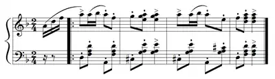 The Polka Italienne (Italian Polka) is a piano work for two pianos by Sergei Rachmaninoff.[1] It was composed in 1906. The piece begins in the key of E-flat minor then changes to E-flat major during the middle section.