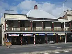 Despite the unequal sizes of the side additions, the building's appearance is unified by a street awning and verandah that run the full width of the Stanley Street elevation, with a chamferboard parapet each side of the central roof; and by the rear extension which also spans the full width of the facade.[1]