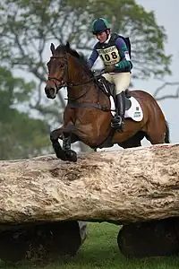 Polly Stockton and Westwood Poser at the Quarry during the cross-country phase of Badminton Horse Trials 2011
