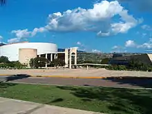 The Polyforum is the flagship facility of the Centro de Convenciones Chiapas which also includes two exhibit halls, one measuring 15,123 square feet (1,405.0 m2) of space and a grand hall measuring 11,840 square feet (1,100 m2) of space, for a grand total of 26,964 square feet (2,505.0 m2) of space. There are also three meeting rooms, a 100-seat auditorium, an on-site restaurant, and various high-rise buildings with governmental offices.