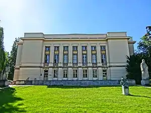 In 1949, Mieczyslaw Tomaszewski was nominated as new director: he organized three series of concerts related to Frédéric Chopin (for the centenary of the composer's death), and presented a series of concerts "Music for All" in 26 cities of the Voivodeship. The orchestra was nationalized in November 1950.[6] On September 1, 1951, Andrzej Szwalbe became director of the Pomeranian Philharmonic Orchestra. He soon championed the project of the construction of a specific building for the Philharmonic, to move out of the Pomorski House of Arts in Gdańska Street. Main conductors at this time were, among others Edward Bury, Tadeusz Wilczak or Robert Satanowski.[5] The inaugural concert of the new symphony orchestra of the State Pomeranian Philharmonic took place on January 9, 1953, in the hall of the Polish Theatre.[9]
