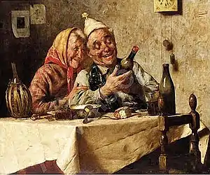 He often painted elderly individuals engaged in apparent buffoonery or celebrating inebriation.[3]