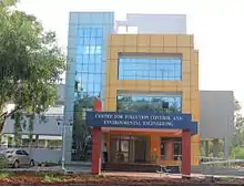 The university library, named after Ananda Ranga Pillai, was established in September 1986 with one deputy librarian and two assistant librarians. It was moved to the present locale as an independent building in July 1990. The library is renowned for its disabled friendly modern infrastructure (80,000 sq. ft), fully air-conditioned, Wi-Fi enabled, services for the visually challenged, among the proactive services with RFID technology and 24/7 remote access to a collection of 4.97 lakhs, of which print is 2.22 and 2.7 lakhs of e-resources.[17]