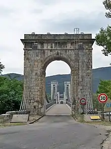 The Pont du Robinet is a Suspension bridge over the Rhône at the town of Donzère in the Département Drôme.