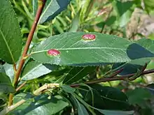 Pontania proxima, the willow gall sawfly, is native to Europe and Western Asia and makes prominent red galls on the leaves of willows (Salix species).[1][2] It is also now widespread in New Zealand, after arriving in Canterbury in 1929,[3] and was successfully introduced to Australia.[4]
