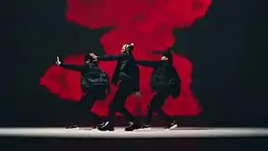 A screenshot from the music video, depicting Alejandro and his dancers delivering a choreography.