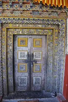 There is an ancient temple, the Lotsaba-bai-lha-khang, dedicated to Shakyamuni or Buddha and attributed to the translator (or Lotsaba), Rinchen Zangpo (958–1055).[3] The shrine has wooden columns supporting a high ceiling. It has murals and a painted door from the period of Rinchen Zangpo (10th to 11th century), though they are in a poor state of preservation.[4]
