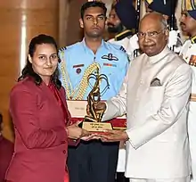 ![]() The President Ram Nath Kovind presenting the Arjuna Award, 2018 to Pooja Kadian for Wushu. | ||||||||||||||||||||||||||||||