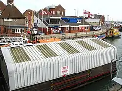 Another move came in 1989 when the lifeboat was moved back to Poole Quay, but this time at the west end beneath Poole Bridge. The following year new crew facilities and storerooms were constructed by adding a two-storey extension to the police office on Poole Quay. In 1994 a floating boathouse was placed next to the lifeboat mooring for the new ILB that took up service at Poole the following year.[1] In November 2016, with the advent of 25 knot boats at flanking stations, the RNLI decided to withdraw the all weather lifeboat from Poole and stationed a D-class inflatable to work alongside the existing Atlantic 85.[2]