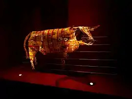 This can be also done in an abrasive and deadpan way, as with Michel Tuffrey's famous work Pisupo Lua Afe (Corned Beef 2000). Of Samoan ancestry, Tuffery constructed the work, which represents a bull, out of processed food cans known as pisupo. It is a unique work of western pop art because Tuffrey includes themes of neocolonialism and racism against non-western cultures (signified by the food cans the work is made of, which represent economic dependence brought on Samoans by the west). The undeniable indigenous viewpoint makes it stand out against more common non-indigenous works of pop art.[50][51]
