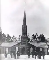 In 1866, Lt. Colonel James Moore began his survey of the Petersburg area to locate land for a National Cemetery. Eventually, a farm just south of the city was chosen. This tract of land had been the campground for the 50th New York Volunteer Engineers. During the war they constructed a Gothic Revival pine-log church called Poplar Grove.