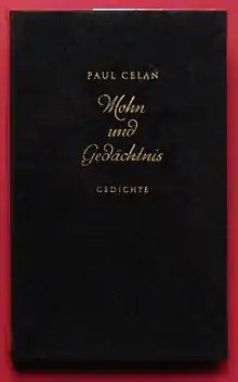 Mohn und Gedächtnis is a 1952 German-language poetry collection by Paul Celan. It has been translated into English by Michael Hamburger as Poppy and Memory.[1] It includes Todesfuge (Deathfugue), one of his best-known and often-anthologized poems.