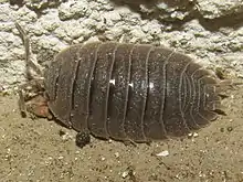 Porcellio dilatatus (Commonly known as the Giant canyon isopod) is a species of woodlouse in the genus Porcellio belonging to the family Porcellionidae. This species is widespread in Europe,[1] and has also been introduced to North America from Western Europe.[2] They are 15 millimetres (0.59 in) long, are brown coloured and striped.[3] They can be found feeding on alder leaves,[4] but mostly feeds on organic food substrates, such as lettuce (Lactuca sativa) in the wild. It also feeds on inorganic metal salts.[5]