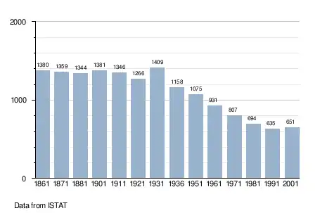 - ↑ "Popolazione Residente al 1° Gennaio 2018". Italian National Institute of Statistics. Retrieved 16 March 2019.