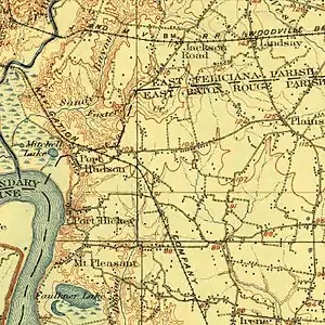 - ↑ Map of Port Hudson and vicinity; Prepared by order of Major General N. P. Banks under the direction of Major D. C. Houston, Chief Engineer, Department of the Gulf and Captain Peter C. Hains, Corps of Engineers, 1864