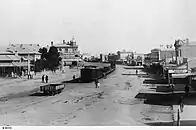 After the standard gauge arrived and narrow-gauge operations ceased, all tracks in Ellen Street tracks were pulled up. Since the smelters beyond the station still had to be supplied with ore from Broken Hill, new standard gauge tracks paralleling the street were laid along the narrow corridor between the station building and the wharves.[9][5][10]