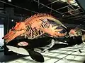 Since December 2015, three orcas, Stella, Lynn and Earth are being kept at the aquarium. All killer whales kept in Japan have been made up of relatives since the death of Nami in January 2011, and only Stella and her grandchildren since the death of Bingo in August 2014. Bingo is the largest killer whale in Japan that has ever been kept in captivity with a total length of over 6.5 m (21 ft). Earth is 5.5 m (18 ft) long and weighs 2,400 kg (5,300 lb) as of 2020, making him the largest living killer whale in Japan in captivity.[15]