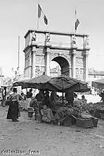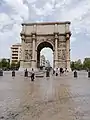 Porte d'Aix (also known as the Porte Royale) is a triumphal arch in Marseille, in the south of France, marking the old entry point to the city on the road from Aix-en-Provence.[1] The classical design by Michel-Robert Penchaud was inspired by the triumphal arches of the Roman Empire. The Porte d’Aix was initially conceived in 1784 to honour Louis XVI and to commemorate the Peace of Paris (1783) that ended the American Revolutionary War. Following the restoration of the Bourbon monarchy in 1814–15, the project was resumed in 1823, now to commemorate French victories in the Spanish Expedition, notably at the Battle of Trocadero, August 31, 1823. It was eventually completed in 1839, with a more general theme of victory.[2]