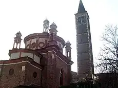 The Portinari Chapel (Italian: Cappella Portinari) is a Renaissance chapel at the Basilica of Sant'Eustorgio, Milan, northern Italy. Commenced in 1460 and completed in 1468, it was commissioned by Pigello Portinari as a private sepulchre and to house a silver shrine given by Archbishop Giovanni Visconti in 1340 containing the relic head of St. Peter of Verona, to whom the chapel is consecrated.[1][2] The architect is unknown, the traditional attribution to Michelozzo having been succeeded with equal uncertainty by attributions to either Filarete or Guiniforte Solari, architect of the apses of the Certosa di Pavia and the church of San Pietro in Gessate in Milan.