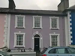 Aberaeron is a relatively unusual example in Wales of a planned settlement.[1] The town was developed in the very early 19th century by the Rev. Alban Thomas Jones Gwynne. Gwynne had amassed a large local landholding in the area through marriage and in 1807 obtained permission for the development of a port by Act of Parliament.[2] Although work on the harbour proceeded swiftly, the construction of the intended residential areas behind it progressed more slowly. By 1819 Gywnne was dead, and no further work was undertaken during the time of his widow. Her death in 1830 saw their son, Colonel A.T.J. Gwynne, reinvigorate activities and in that year he engaged Edward Haycock Sr. to draw up plans.[lower-alpha 1] Haycock, son of an architect, lived most of his life in Shrewsbury and developed an extensive practice in Shropshire, the Welsh Borders and South Wales.[4] Haycock worked out a grid plan development and leases on plots were sold from the 1830s onwards.[5] Portland Place was a later development, of the 1850s. An inscription on No. 1, Portland House, dates it to 1855 and credits Benjamin Evans as the architect.[6] The development of the town continued as a centre for trade and shipbuilding throughout the 19th century, but declined in the early 20th century with the arrival in the area of the railways.[7] By the 21st century, Aberaeron's economy had refocussed on tourism[8] and local government. The town is now the site of Neuadd Cyngor Ceredigion (English: Ceredigion Council Hall) at Penmorfa, the headquarters of Ceredigion County Council.[9]