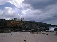 The parish of Porto Covo, by the middle of the 18th century, was nothing more than a small coastal settlement around a beach and small cove.[3] Its small dimensions was reflected in the number of homes, which numbered only four by 1780. On the island of Pessegueiro, King Philip II of Spain hoped to found a maritime port to support his claim to the territory and defend against marauding pirates.[3] At that time an artificial rock barrier was constructed to connect the island of Pessegueiro to the coastline. Two forts were constructed on the island, supporting small garrisons to watch over the coast, but today in ruins.
