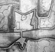 A fort at the site of the crossing of the creek turns up in plans from 1660 and 1666.[3] The fort was rebuilt in 1688 under the direction of the Chief Royal Engineer Sir Martin Beckman.[3]