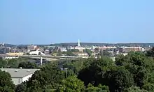According to the United States Census Bureau, the city has a total area of 16.8 square miles (43.6 km2), of which 15.7 square miles (40.6 km2) are land and 1.2 square miles (3.0 km2), or 6.92%, are water.[14] Portsmouth is drained by Berrys Brook, Sagamore Creek and the Piscataqua River, which is the boundary between New Hampshire and Maine. The highest point in the city is 110 feet (34 m) above sea level, within Pease International Airport.