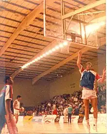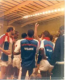 Portsmouth had to borrow Kingston's red kit as they only had a white strip available and league rules at the time insisted that away teams wore white.[8] The court was less than half full of spectators and the match did little to create an atmosphere, with Portsmouth trailing 20–8 after five minutes and 51–34 at half-time before finally losing 115–72.[1] Again the Americans led the scoring, Shackleford netting 31 points and Owen 22, with nobody else in double figures for Portsmouth.