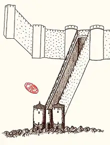 The Portuguese met some resistance on the beaches of Alcácer-Ceguer, where the garrison had erected barricades manned by crossbowmen and 500 horsemen, in order to prevent the Portuguese from landing.[1] They were however vigorously assaulted by a squadron commanded by Prince Henry the Navigator, and the Muslims forced back to the city.[1] The Portuguese were unable to breach through its gates, but later that night, the Portuguese used a bombard to demolish part of the city walls.[1]