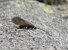 The only known female resembles P. juliani and is lighter-coloured. Its head and appendages are brown, as well as the femora and tibiae, the prothorax, sclerites of mesothorax and metathorax light brown to brown, and the tarsi gradually darkening. The forewings, 8.5 mm long, are light brown and shorter than the abdomen, with very long setae. The genitalia remain undescribed, because the female has a slightly damaged terminalia.[1]