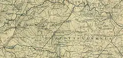 ![]() 1894 map showing the PF&P's line between Fredericksburg and Orange. | |