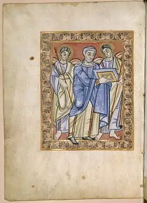The Poussay Gospels is a 233-folio illuminated Gospel Book, produced around 980 in the scriptorium of Reichenau Abbey in southern Germany. It was given to a Benedictine convent in Poussay by its founder Berthold of Toul, who had been named bishop by Otto III, Holy Roman Emperor. Between 1025 and 1050 pope Leo IX gave the abbey a new binding for the work, including a Byzantine ivory plaque. After that abbey closed the manuscript entered the town library in Mirecourt, which in 1844 sold it to the Bibliothèque nationale de France for 3,000 francs 50 centimes in notes. It is still in the BNF, as Latin 10514. It was one of ten Ottonian manuscripts registered by UNESCO on the Memory of the World Register in 2003.