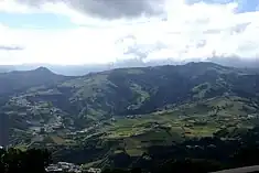 The municipality occupies the semi-active craters of the Furnas and Povoação volcanoes, circled by forests, mountains and river valleys to the north, west and east, while the Atlantic coast to the south.[4][6] From 100,000 to 95,000 years ago, the Povoação crater, associated with the volcano, consists of volcanic products that were emitted from this volcano of the same name, that overlay the Volcanic Complex of Nordeste.[6] Corresponding basaltic lava flows and other volcanic ejectants, the top of this formation is covered by materials involved in explosive eruptions from the Furnas volcano.[6]